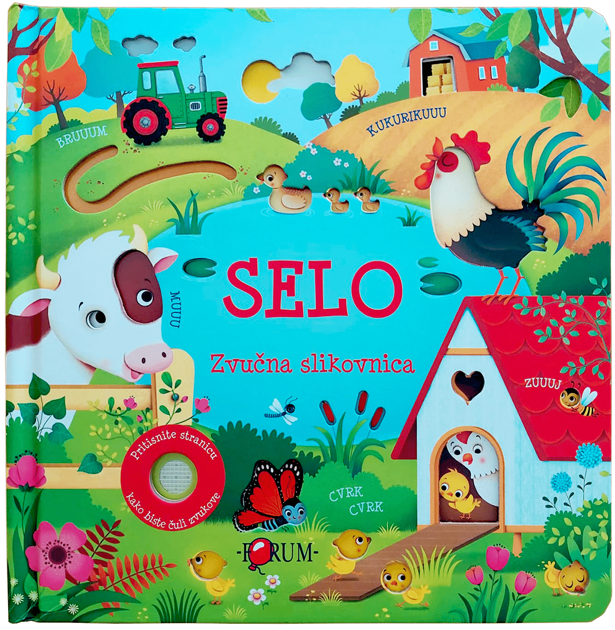 Mala će djeca uživati u upoznavanju sa svim bučnim životinjama sa sela pritišćući stranice ove predivno ilustrirane slikovnice.
